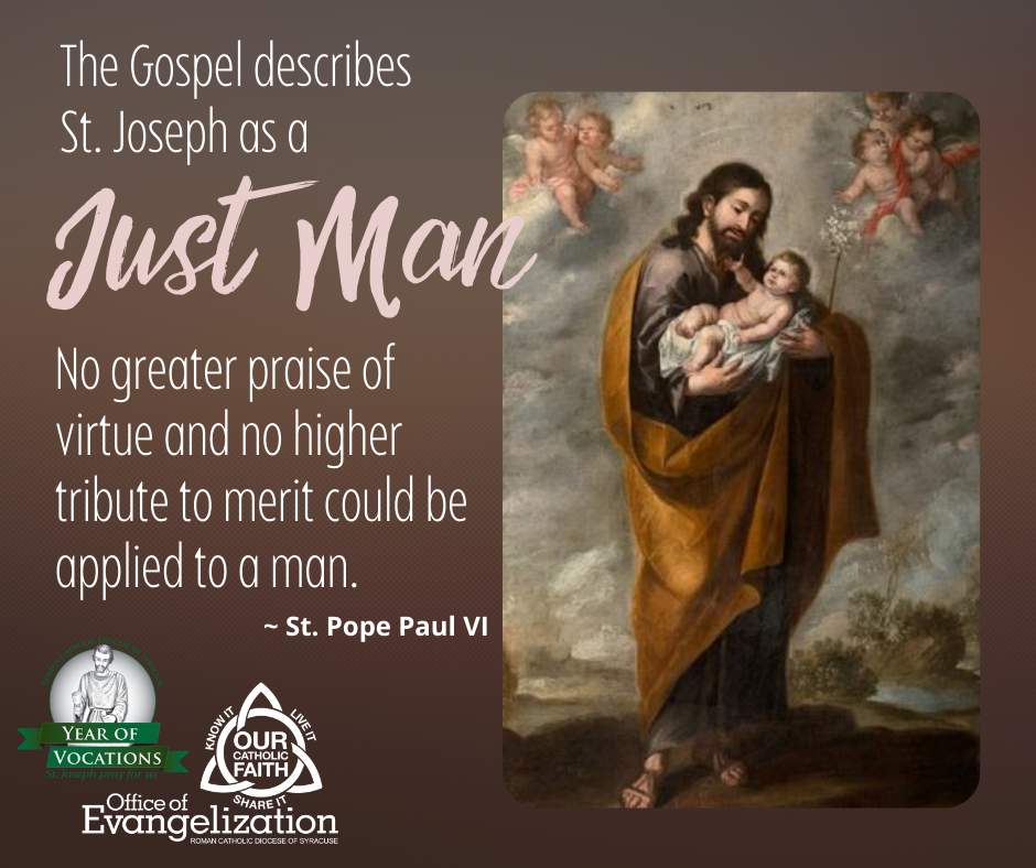 Joseph was a just man because he lived a virtuous live. By looking to St. Joseph, we can see that growing in virtue is the way to becoming just. This is an important learning for us, because we, too, have the ability to be just! It's what God wants for us. God needs us to move beyond thinking we are just ourselves, in order that he can use us for His BIG purposes - like he used Joseph.